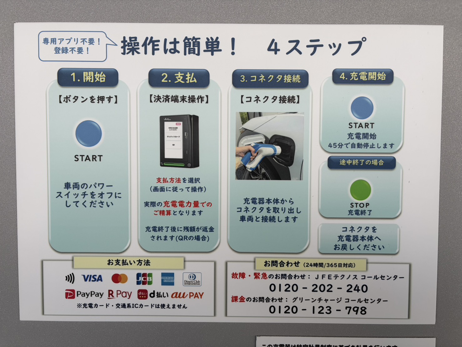 新しい充電器は、会員登録不要で、クレジットカードやQRコード決済が可能です
