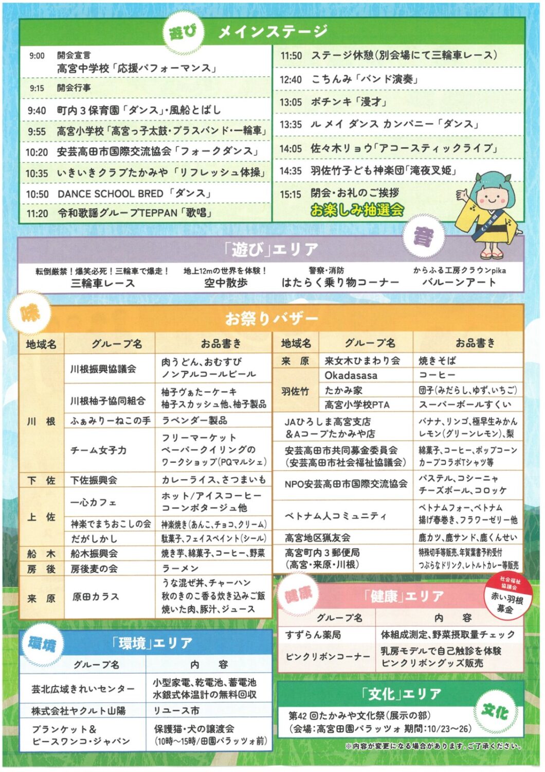 開催場所 | 安芸高田市役所高宮支所前ふれあい広場等 |