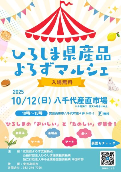 八千代産直市場にて「ひろしま県産品よろずマルシェ」が開催されます。