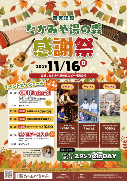 今年も「たかみや湯の森感謝祭」が開催されます。