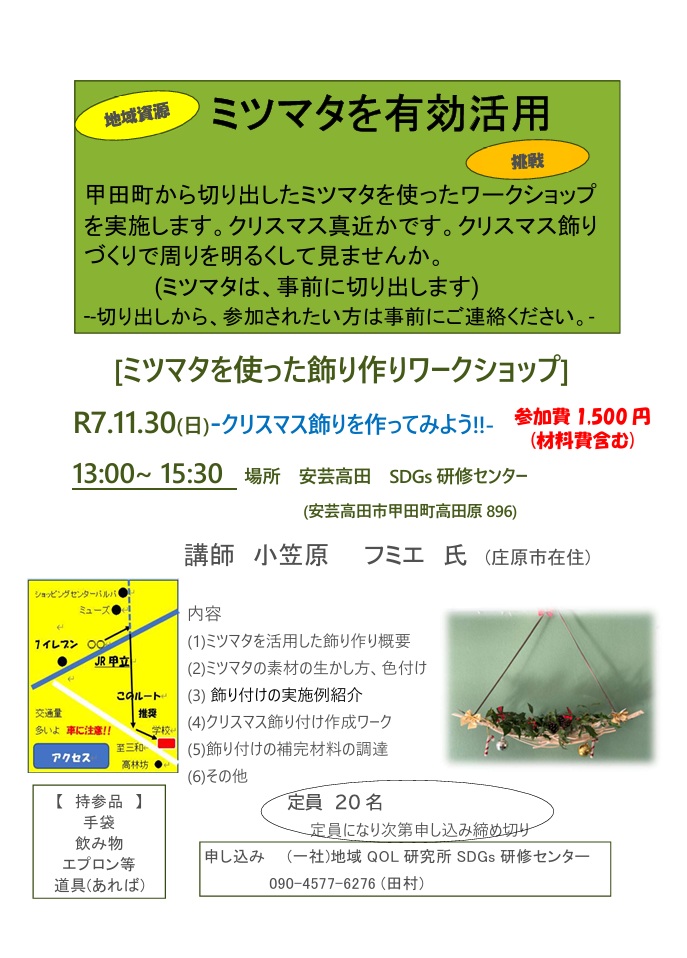 | 申し込み (一社)地域QOL研究所SDGs研修センター(田村) | 090-4577-6276 |