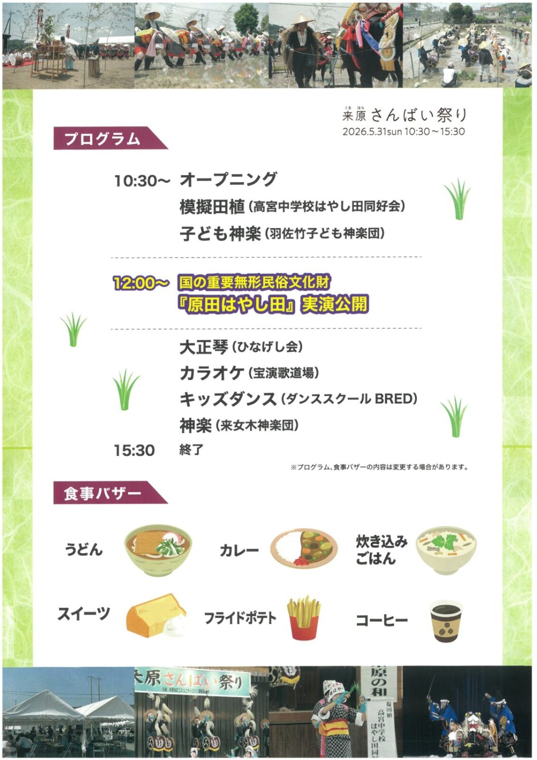 ※プログラム、食事バザーの内容は変更する場合があります。